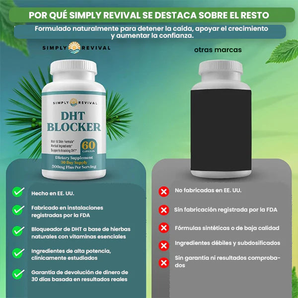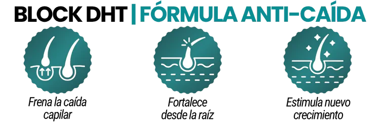 Los ingredientes naturales bloquean el DHT, principal culpable de la caída, promoviendo un crecimiento más saludable y fuerte.