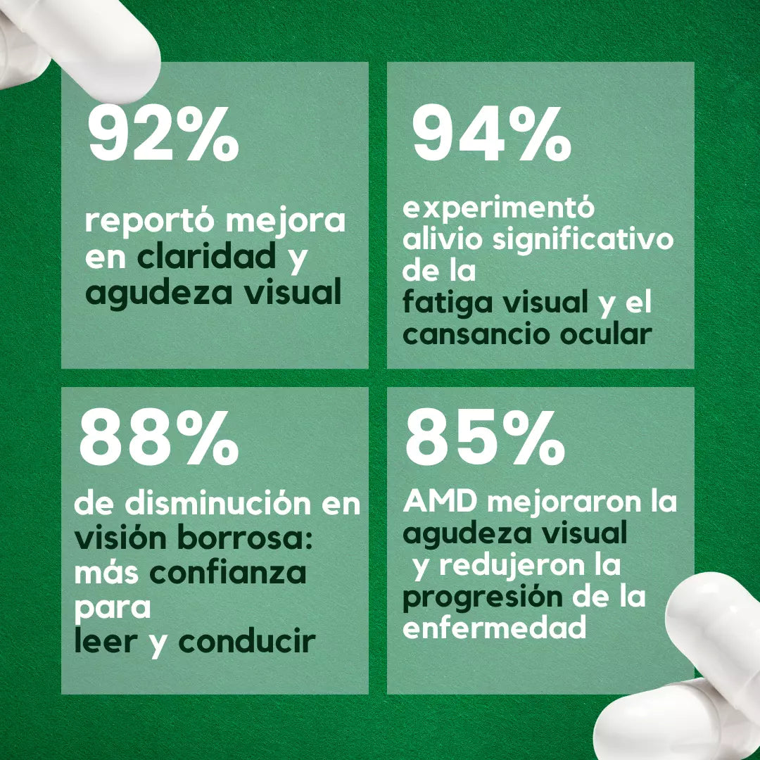 👉 La mayoría nota mejor enfoque y menos cansancio visual desde las primeras 2 semanas. Para resultados completos, se sugiere un tratamiento de 2 a 3 meses.